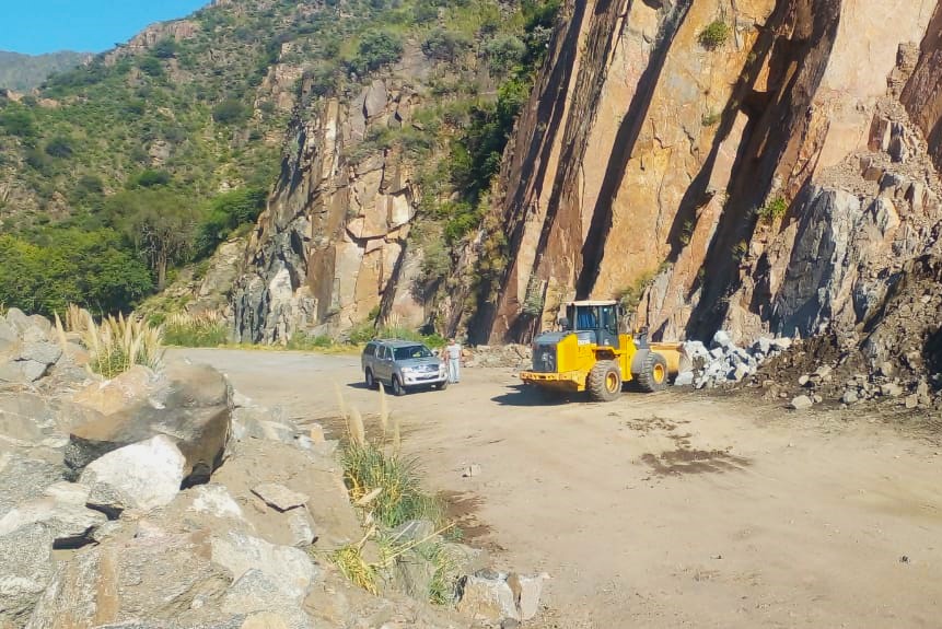 Mientras que el paso entre Nogolí y Río Grande ya quedó habilitado. En un punto a pocos kilómetros del dique hubo un desprendimiento de material rocoso producto de las precipitaciones y por el gran tamaño de las rocas se necesitó emplear maquinaria especializada para el despeje.