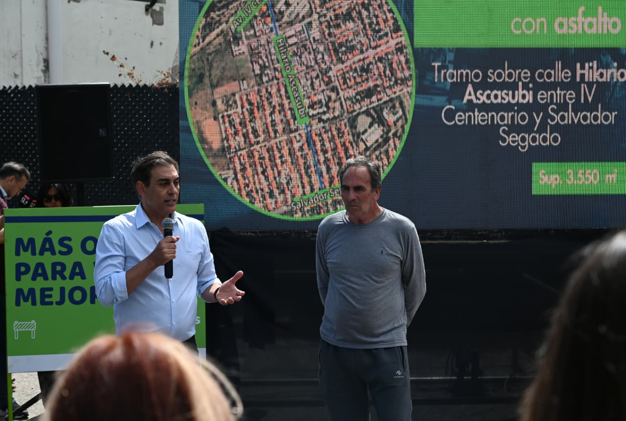 El gobernador Claudio Poggi, junto al intendente de la ciudad de San Luis, Gastón Hissa, encabezaron este miércoles a la mañana un acto para presentar la repavimentación de la calle Ascasubi, desde la avenida IV Centenario hasta Salvador Segado, en el tradicional barrio El Hornero. Estos trabajos significan un avance en la seguridad vial y en la calidad de vida en general de quienes allí habitan.