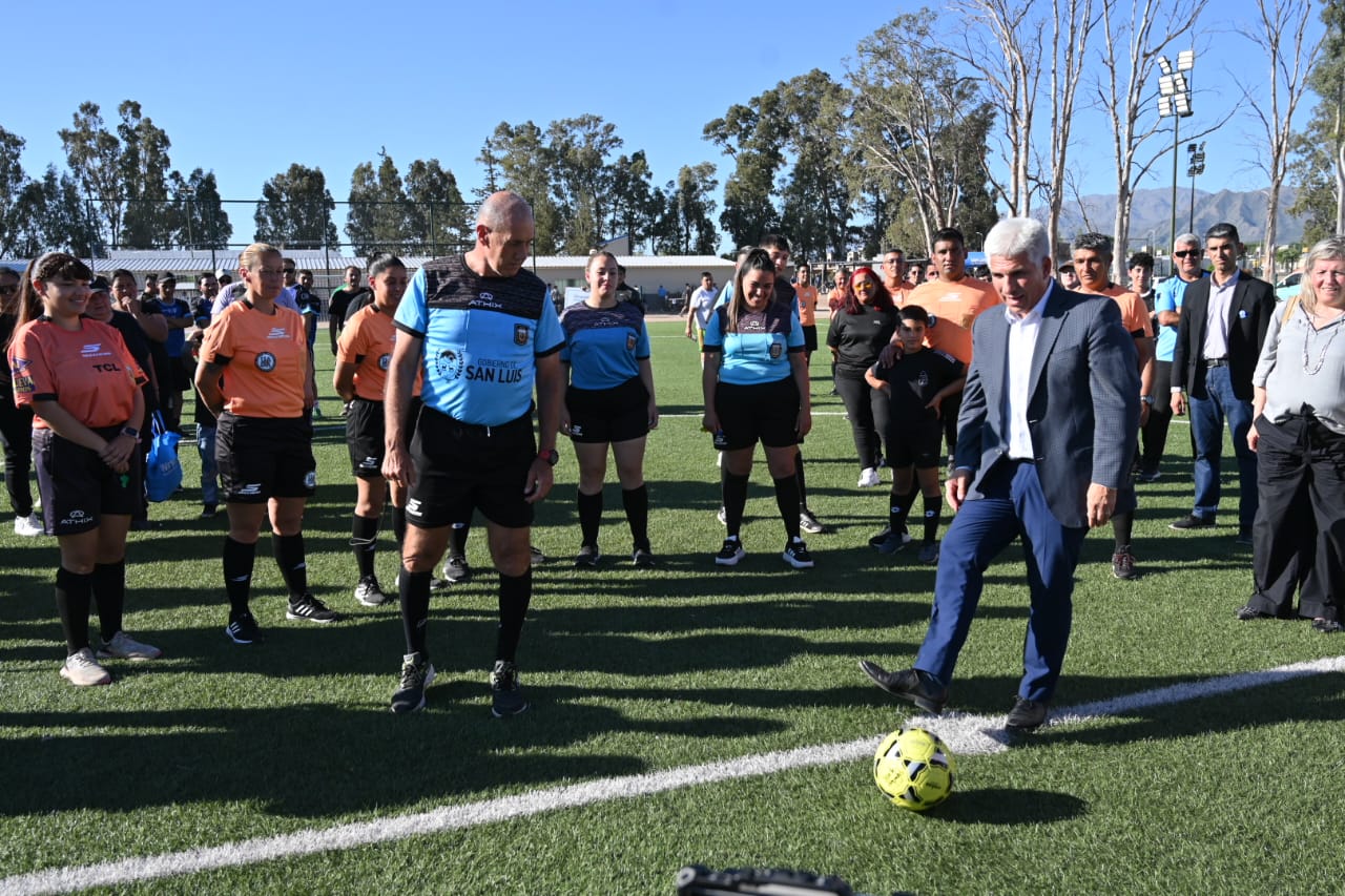 Una vez finalizadas las palabras de apertura, fue el momento para que el Gobernador diera el puntapié inicial. El árbitro hizo sonar su silbato, Poggi pateó la pelota y todos celebraron el comienzo de la edición 2025 de las Olimpiada, cuya premiación será en el Día del Empleado Público.