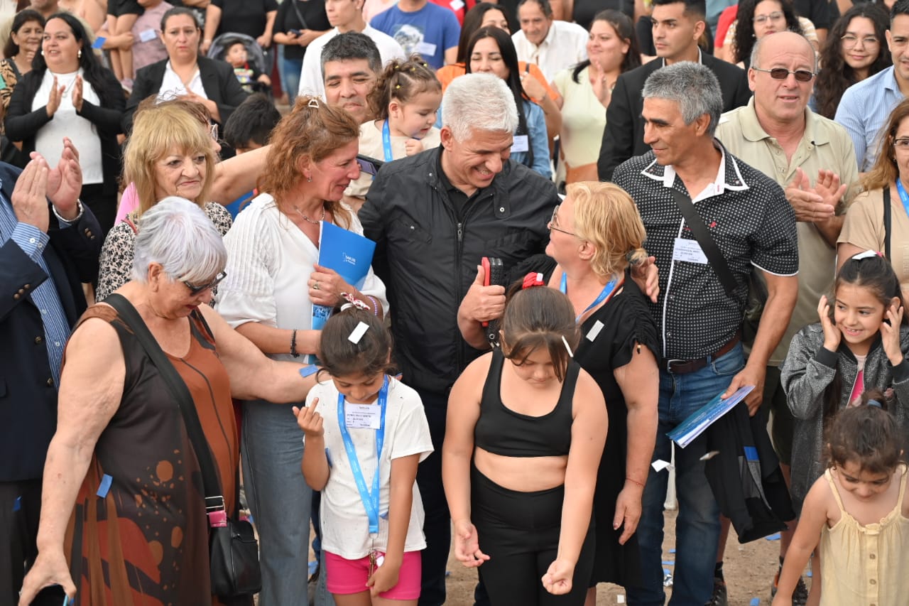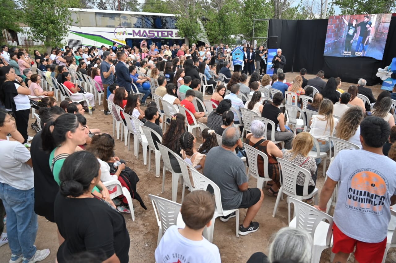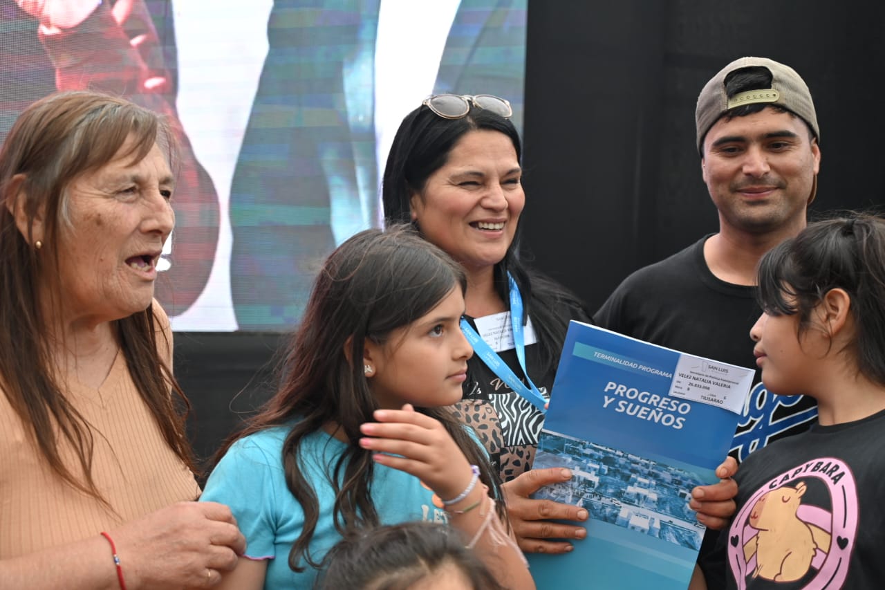 La actividad se desarrolló sobre avenida San Luis, entre las calles Hermanos Orosco y San Pablo, justo donde se emplaza el nuevo barrio donde nacen miles de sueños. Durante el acto se proyectó un video institucional que repasó el alcance del programa y el proceso de construcción de las viviendas.