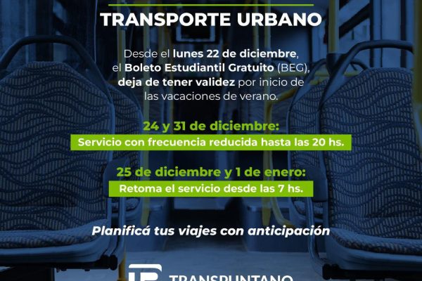 La empresa de transporte público, informó que a partir de este lunes 22 de diciembre, el Boleto Estudiantil Gratuito dejara de tener validez. La medida se extenderá durante el receso de verano y retomará su normalidad en el inicio del ciclo lectivo 2026. Además la empresa comunicó que durante los días 24 y 31 de…