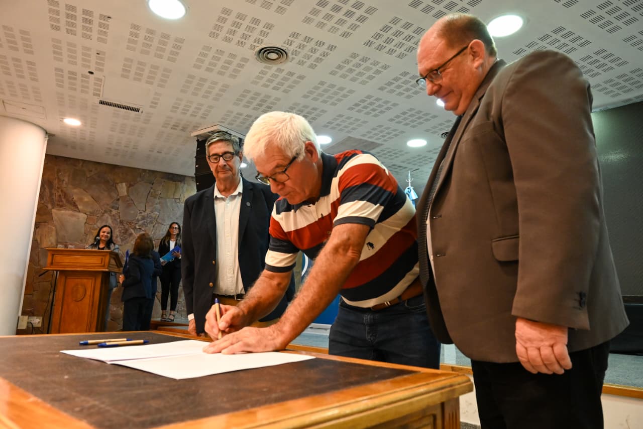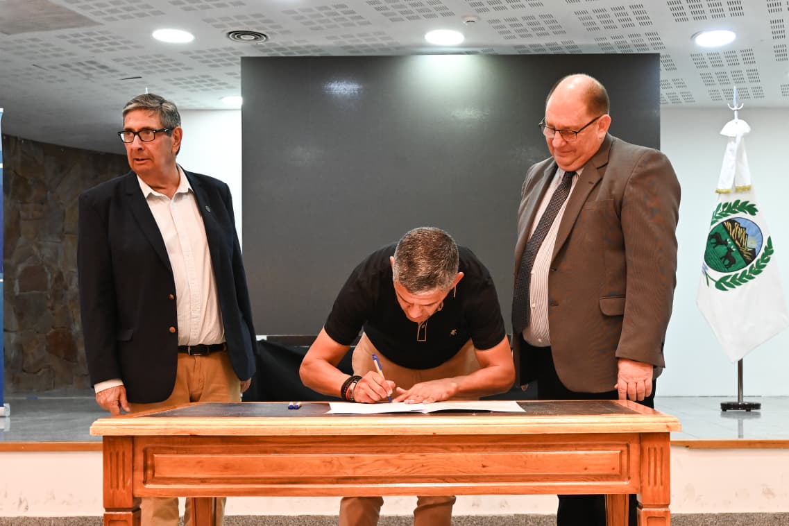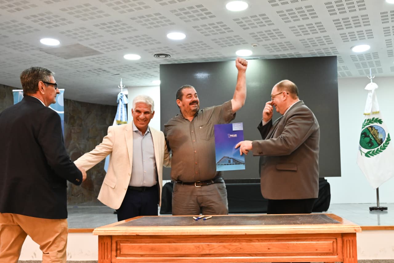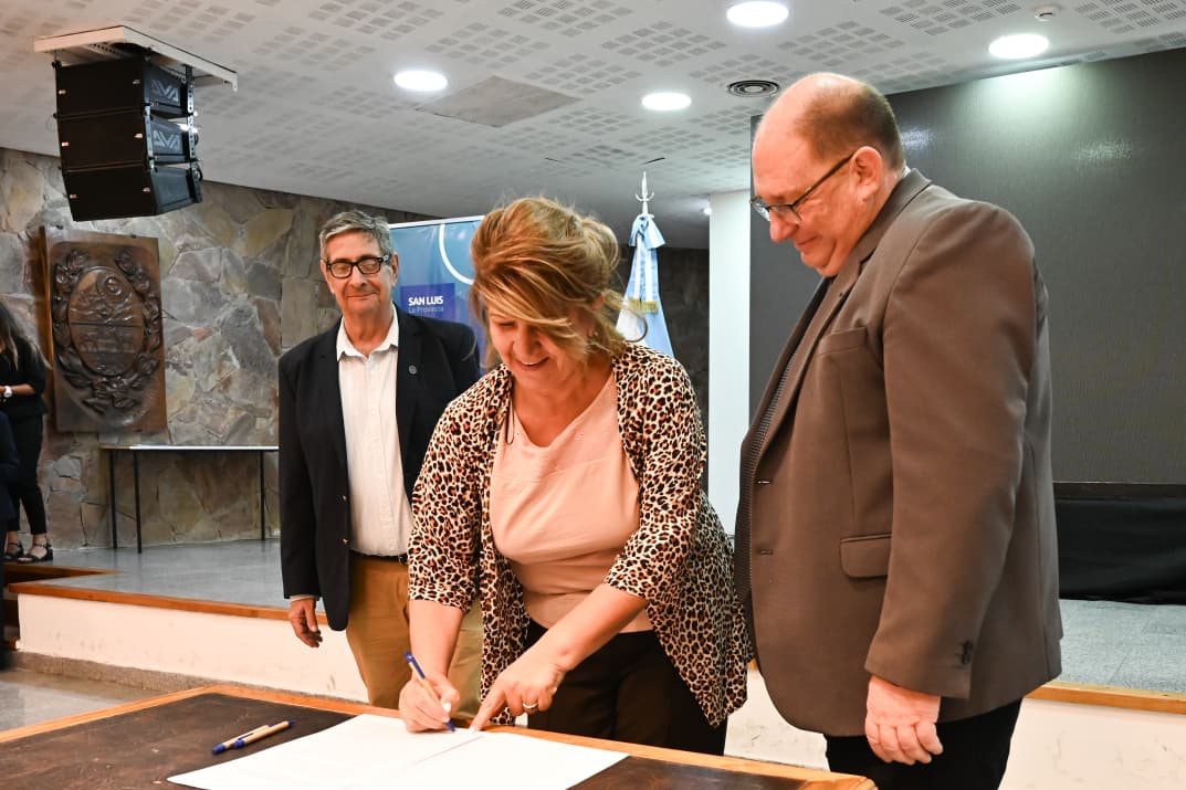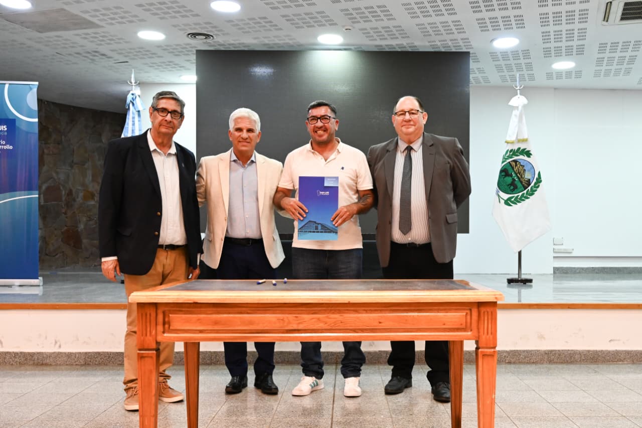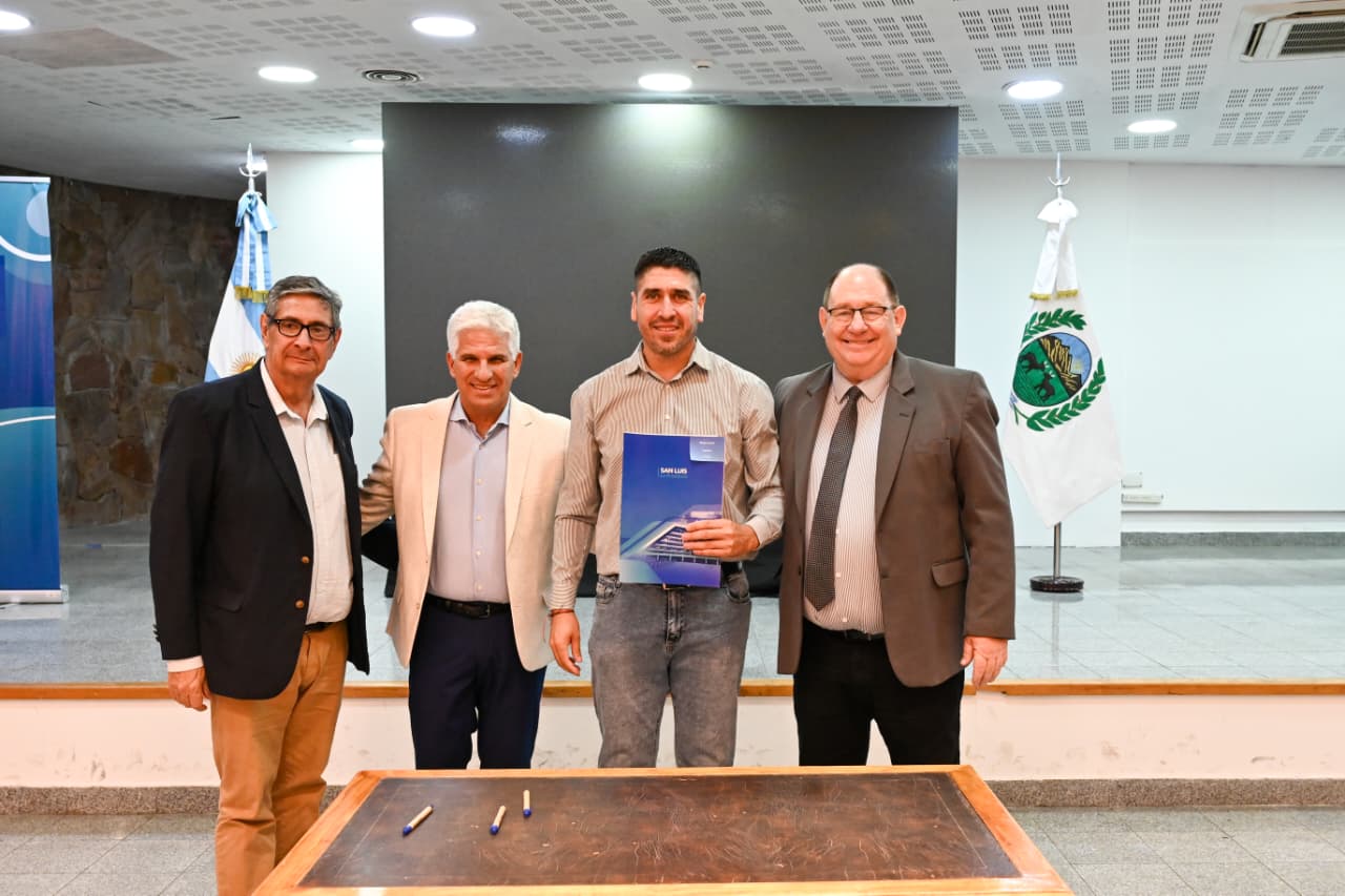 Firmaron los intendentes de Anchorena, Héctor Baigorria (5 viviendas); Bagual, Marcelo Ulloa (4); Fortuna, Diego Lucero (5); Navia, Osvaldo Olivera (1); Unión, Damián Vigil (16); Carpintería, Gastón Herrera (16); Concarán, Marcelo Gil Piccinini (20); Cortaderas, Macarena Benítez (16); La Punilla, Patricia Dubini (1); Los Molles, Marcelo Sánchez (10); Papagayos, José Gauna (6); Santa Rosa del Conlara, Miguel Postiguillo (20); Villa del Carmen, Matías Raboni (5); Villa Larca, Mateo Vilchez (10); Fraga, Gastón Argenio (10); San José del Morro, Elián Barroso (1); Naschel, Valeria Kuhn (16); Renca, Luis Altamirano (6); San Pablo, Silvia de la Serna (3); Las Chacras, Sandra Altamirano (6); La Vertiente, Marcelo Alcaraz (3); Lafinur, Gladys Cornejo (10); Leandro Alem, Eduardo Cabello (6); Luján, Mario Romero (16); Talita, Karina Maidana (4); La Calera, Diego Lorenzetti (6); La Carolina, Jorge Villegas (6); Los Manantiales, Carolina Salinas (4); Nogolí, Ramón Funes (10); Potrero de los Funes, Ignacio Olagaray (16); San Gerónimo, Norma Velásquez (5); Villa de la Quebrada, Rosa Calderón (10); Alto Pencoso, Alberto Olguín (4); Balde, Gladys Páez Sánchez (6); Beazley, Javier Díaz (10); Desaguadero, Sergio González (4) y Zanjitas, Rosendo Videla (6).