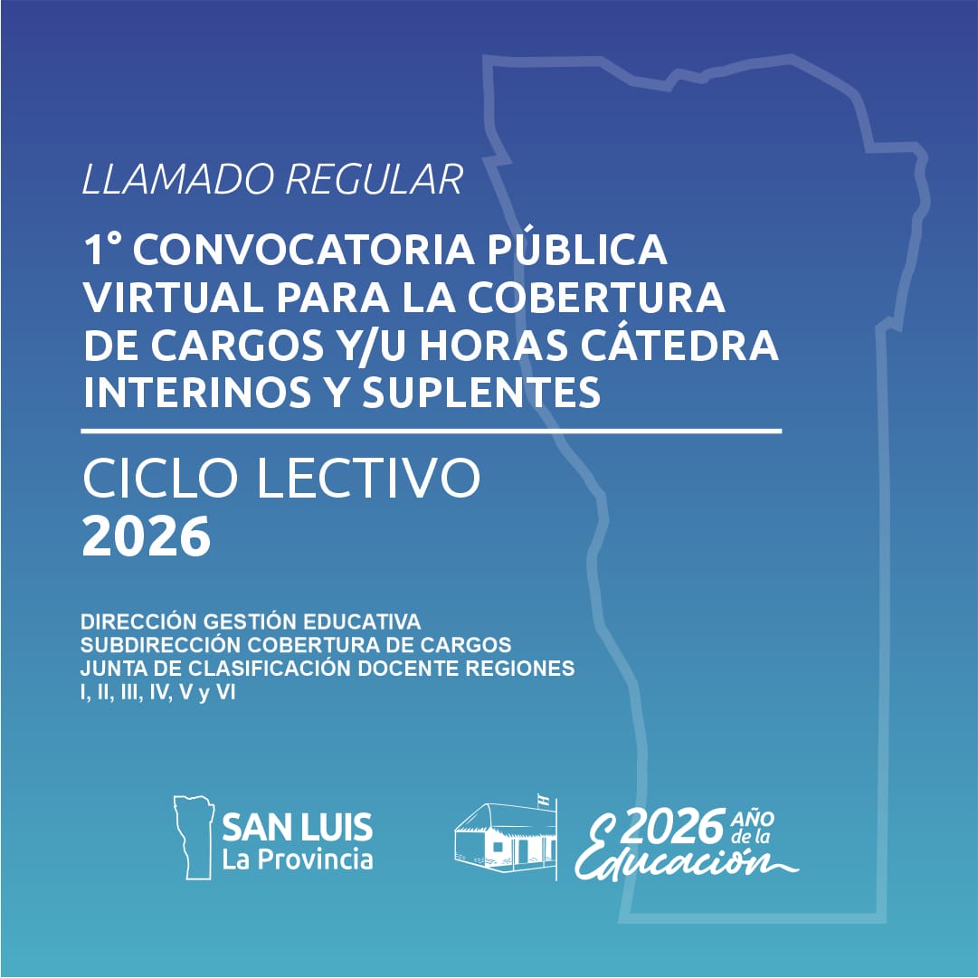 Fecha y hora límite: las manifestaciones de voluntad para la cobertura de cargos y/u horas cátedra se recepcionarán a través del Sistema de Junta de Clasificación Docente de la provincia de San Luis el día martes 24 de febrero de 2026, desde las 08:00 hasta las 14:00.