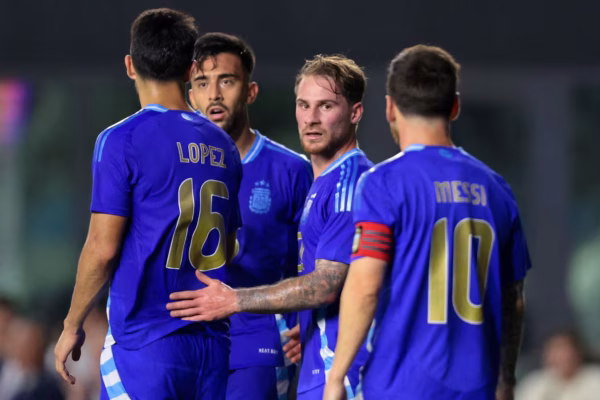 El seleccionado argentino se impuso por 6 a 0 frente a Puerto Rico al término del partido que disputaron esta noche, en el Chase Stadium de Miami, por un amistoso internacional. El mediocampista Alexis Mac Allister convirtió un doblete, a los 13 y 35 minutos del primer tiempo, y el defensor Gonzalo Montiel marcó a…